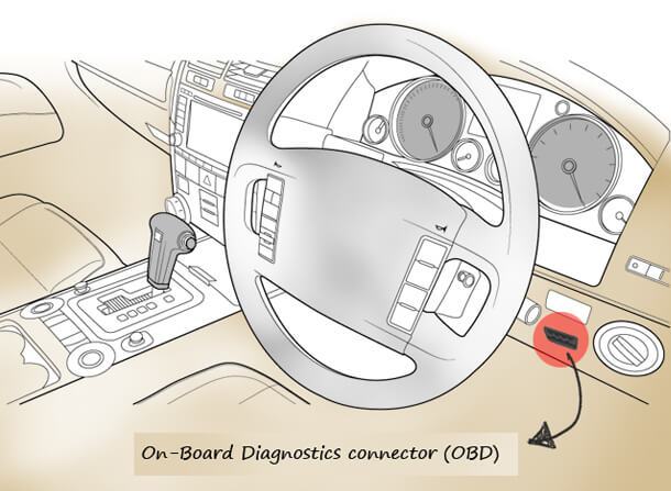 ตำแหน่งของพอร์ต OBDII จะแตกต่างกันไปในรถยนต์แต่ละรุ่น